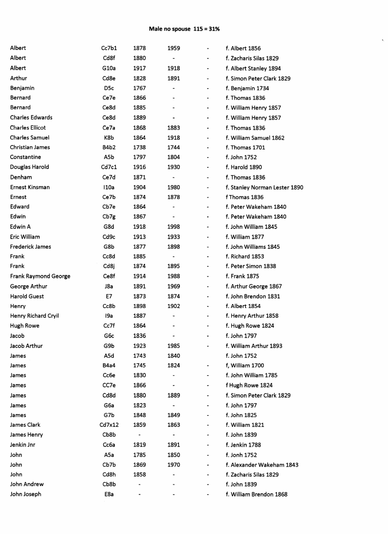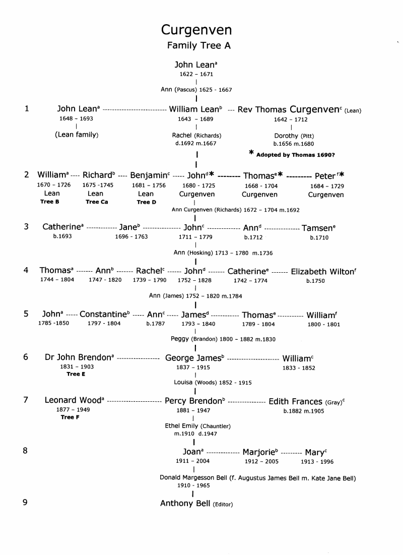 Each name has been given its code. A6b. Cb is page number, 6 is the generation (1 is Rev. Thomas Curgenven) and b is the position across the page. The spouse has their husband’s code.